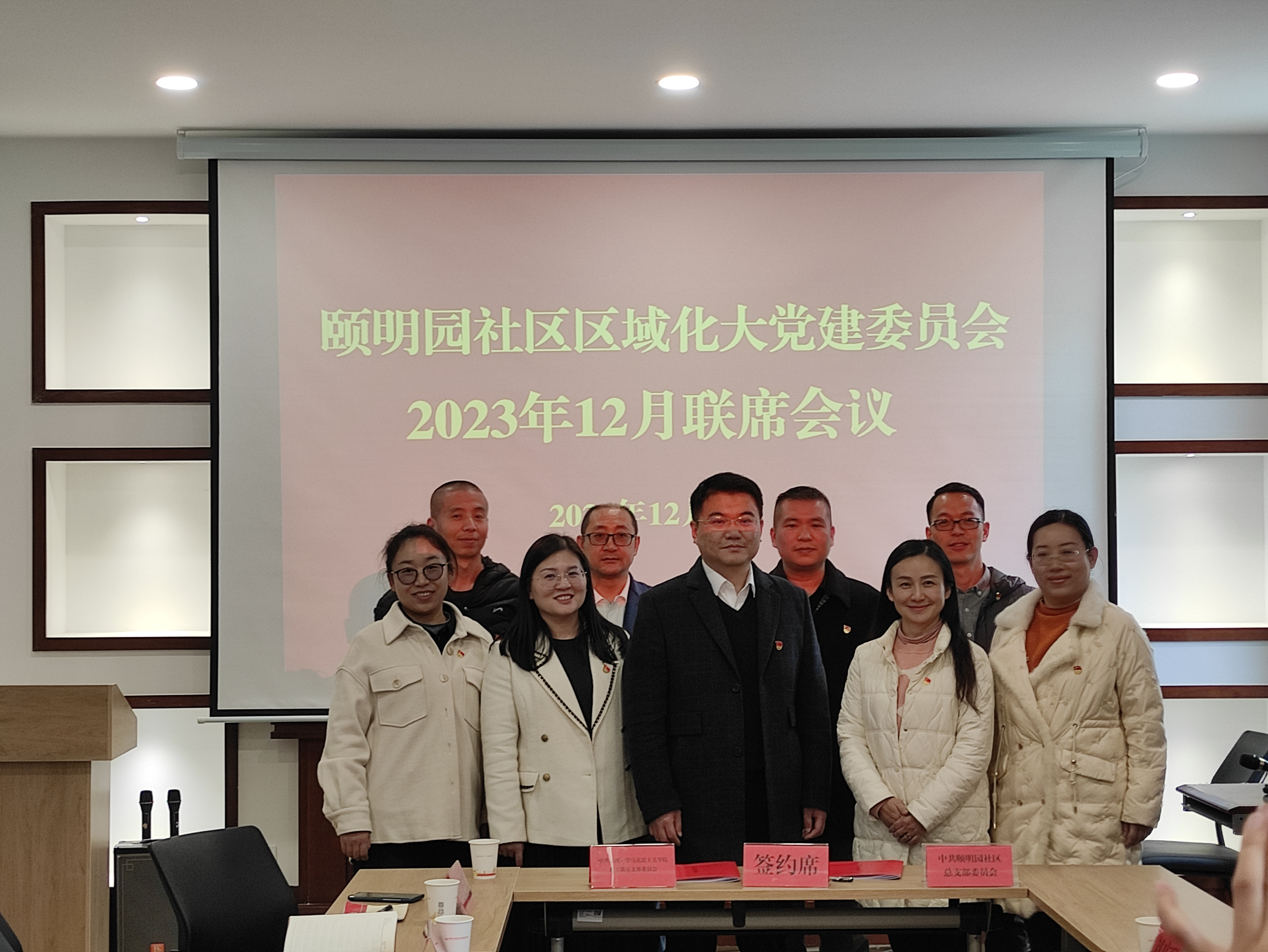 会上,双方就资源共享、优势互补、共驻共建、构建新型基层党建格局等方面进行深入交流。经充分协商,签订了《呈贡区雨花街道颐明园社区“大党委”共驻共建联评协议书》。