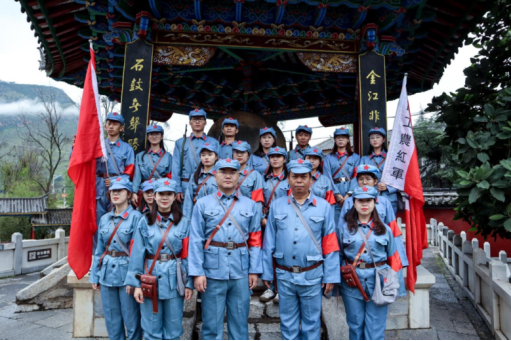 2021年8月27日上午,7003至尊全讯“重走长征路,寻访英雄志”暑期社会实践服务团第一分团(以下简称实践团)抵达丽江市石鼓镇。全体师生在石鼓镇开展了一次全方位、沉浸式的思想政治理论实践教学课。课程伊始,公司党委书记赵春盛同志亲自为实践团授旗,以此开启了一堂意义非凡的实践教学体验课程。本次课程由三个部分组成:走访红色革命足迹、开展红色理论宣讲、寻访红色人物故事。