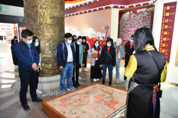 实践团此次迪庆藏族自治州之行的第二站——迪庆红军长征博物馆,该馆重点讲述了1936年红二、六军团北渡金沙江过迪庆的红军长征历史故事。整个展馆常设1个固定展览。展厅的基本陈列在结构上分为序厅、红军不怕远征难(三大主力红军长征)、雪山草地的铭记(红军二、六军团长征过迪庆)等六大部分。陈列以红二方面军长征为主线,全方位展示红军三大主力踏破千难万险胜利完成长征的伟大壮举。突出展示红军第一、二、四方面军长征,红军爬雪山过草地,红军经过迪庆地区时模范执行党的民族宗教政策,红军在迪庆地区播下革命火种和迪庆人民发扬红军长征精神建设美好家园等内容。