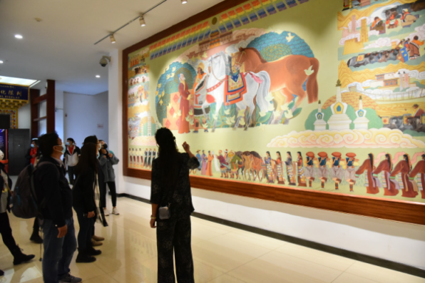 实践团此次迪庆藏族自治州之行的第一站——迪庆藏族自治州博物馆。通过对博物馆的参观,团队成员们对迪庆藏族自治州的自然资源、社会历史、民族文化有了全面深刻的了解。
