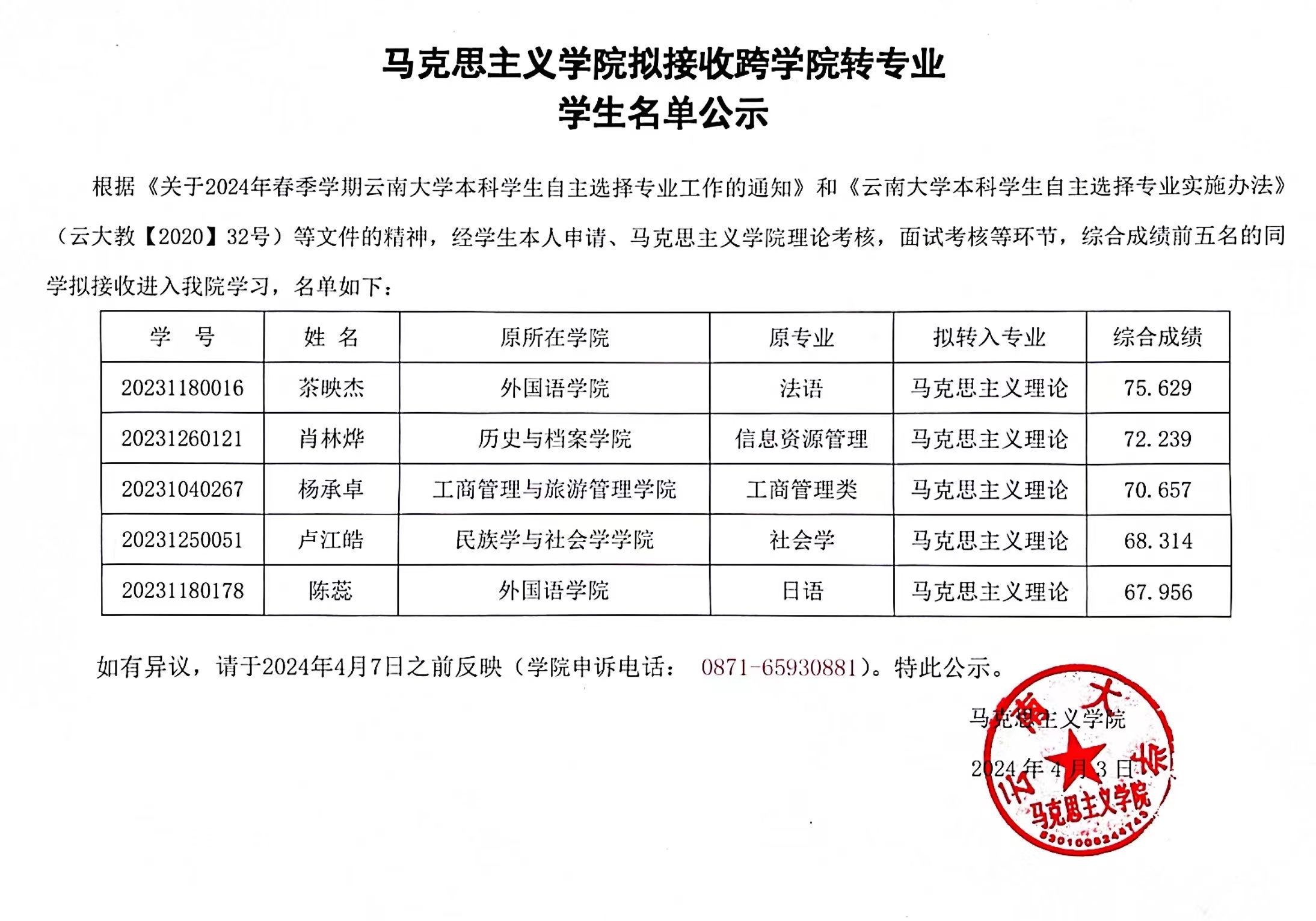 7003至尊全讯拟接收跨学院转专业员工名单公示