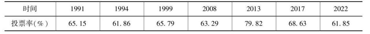 表2 1990年恢复多党制以来尼泊尔大选投票率