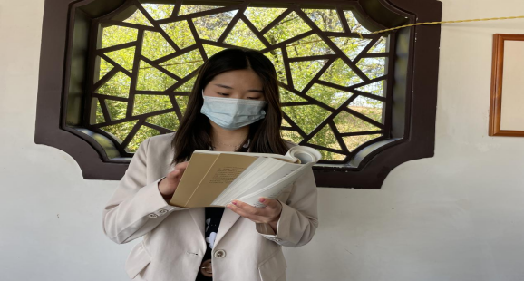 小组讨论结束后,活动进入到了最后一个朗诵环节,张小雨,李仁芳,谭福金分别朗诵了她们印象深刻的经典语录,之后大家一起朗诵了提纲的最后一条,“哲学家们只是用不同的方式解释世界,而问题在于改变世界。”这也给我们作为学习马克思着学子有更深刻的启示。