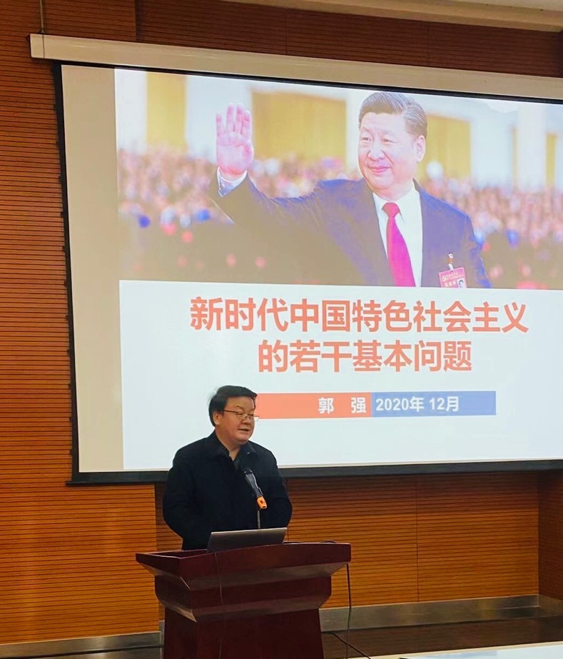 2020年12月25日下午14时,中共中央党校(国家行政学院)科学社会主义教研部副主任、教授、博士生导师,中国科学社会主义学会副会长兼秘书长,当代世界社会主义专业委员会委员长,《科学社会主义》杂志社总编辑郭强教授做客艾思奇大讲坛,在600cc全讯白菜网呈贡校区综合楼3101报告厅做了题为《新时代中国特色社会主义的若干基本问题》的学术讲座。讲座由7003至尊全讯副经理、博士生导师袁群教授主持,7003至尊全讯师生共100余人参加了讲座。本次讲座由7003至尊全讯、600cc全讯白菜网马克思主义传播基地主办。