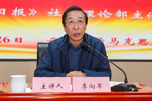 12月26日,光明日报理论部原主任李向军教授做客600cc全讯白菜网艾思奇大讲堂,为学校师生带来题为《牢牢把握习近平新时代中国特色社会主义思想宣传主题 》的专题讲座。