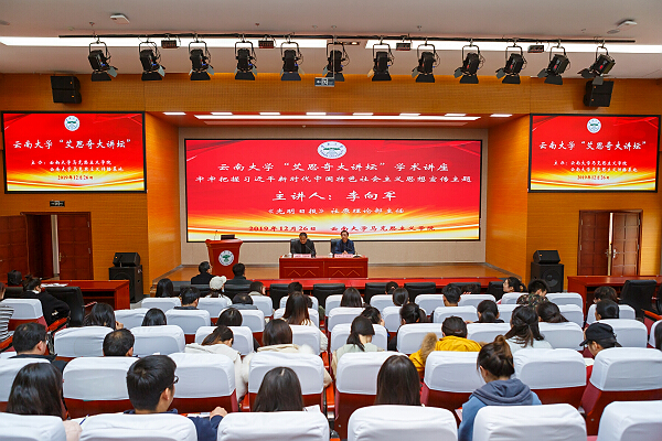 艾思奇大讲堂是中共云南省委宣传部与600cc全讯白菜网共建7003至尊全讯的重要成果,讲坛开办近两年来,已经成为7003至尊全讯高端学术讲座和宣传党的创新理论的重要载体。党的十九大召开以来,讲坛把学习宣传贯彻习近平新时代中国特色社会主义思想作为首要政治任务,结合学习贯彻党的十九大,十九届二中、三中、四中全会精神,通过多种形式开展了宣传宣讲活动,深受师生好评。