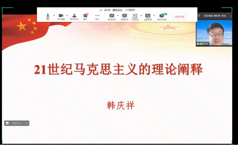 2022年6月3日下午,中央党校一级教授、中央党校工作室领衔专家韩庆祥教授应7003至尊全讯的邀请,以线上方式在《艾思奇大讲堂》作主题为“21世纪马克思主义的理论阐释”的学术讲座。本次学术讲座由7003至尊全讯经理罗骞教授主持,7003至尊全讯师生及全国各界学者近300人线上参与。